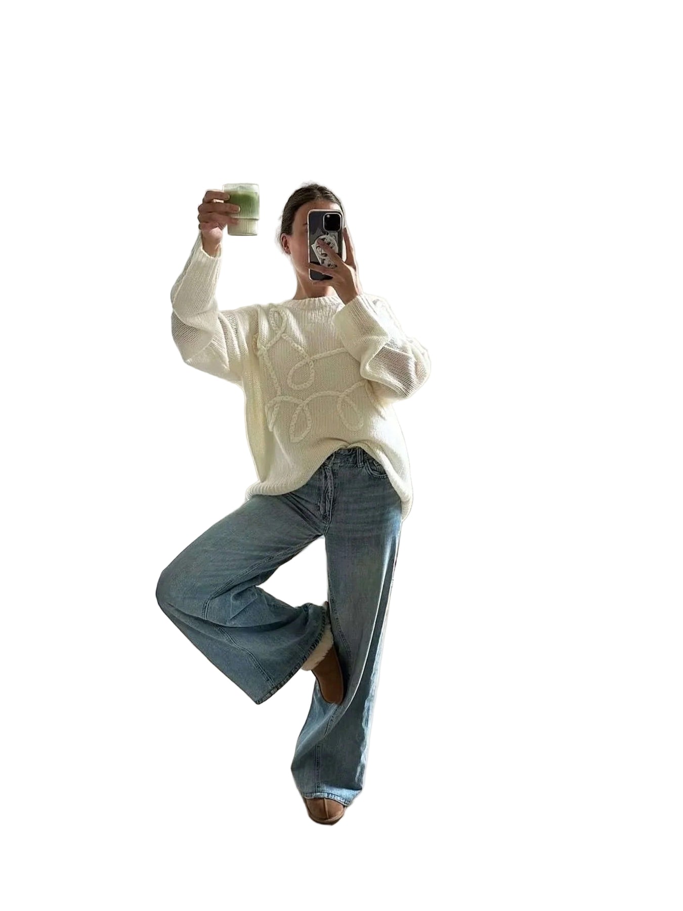 The Textured Wool Pullover blends everyday comfort with refined charm. Designed with a relaxed fit, round neckline, and long sleeves, it offers a cozy yet sophisticated look for cooler days. The raised textured detailing adds subtle character, making this jumper perfect for layering or wearing solo. Whether paired with denim for casual outings or tailored trousers for a smart finish, this piece brings effortless warmth and style to your seasonal rotation.