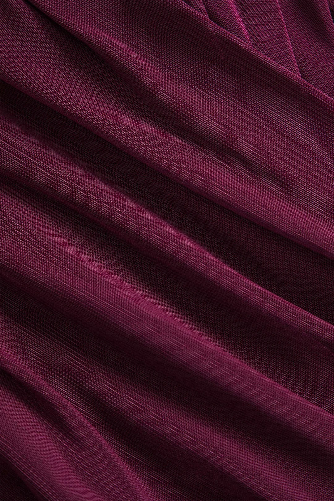 Elevate your wardrobe with this chic Ruched Mesh Long Sleeve Top, designed to highlight feminine elegance with a modern twist. Featuring a flattering cross-front neckline and soft ruching throughout, it creates a sleek, sculpted silhouette. The sheer long sleeves add an alluring touch, while the slightly cropped length makes it perfect for pairing with high-waisted trousers, skirts, or denim. A versatile piece that transitions effortlessly from daytime sophistication to evening allure.