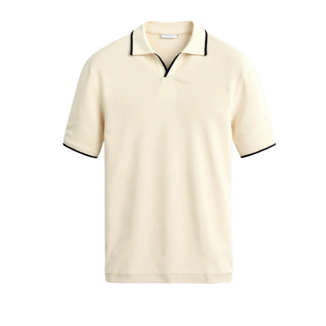 The Men’s Valen Contrast Trim Polo Knit Shirt captures effortless refinement with a contemporary edge. Designed with a soft knit texture and minimalist open collar, it brings elevated comfort to a timeless silhouette. The contrast piping at the collar and sleeves lends a subtle touch of distinction, making it perfect for both smart and casual settings.