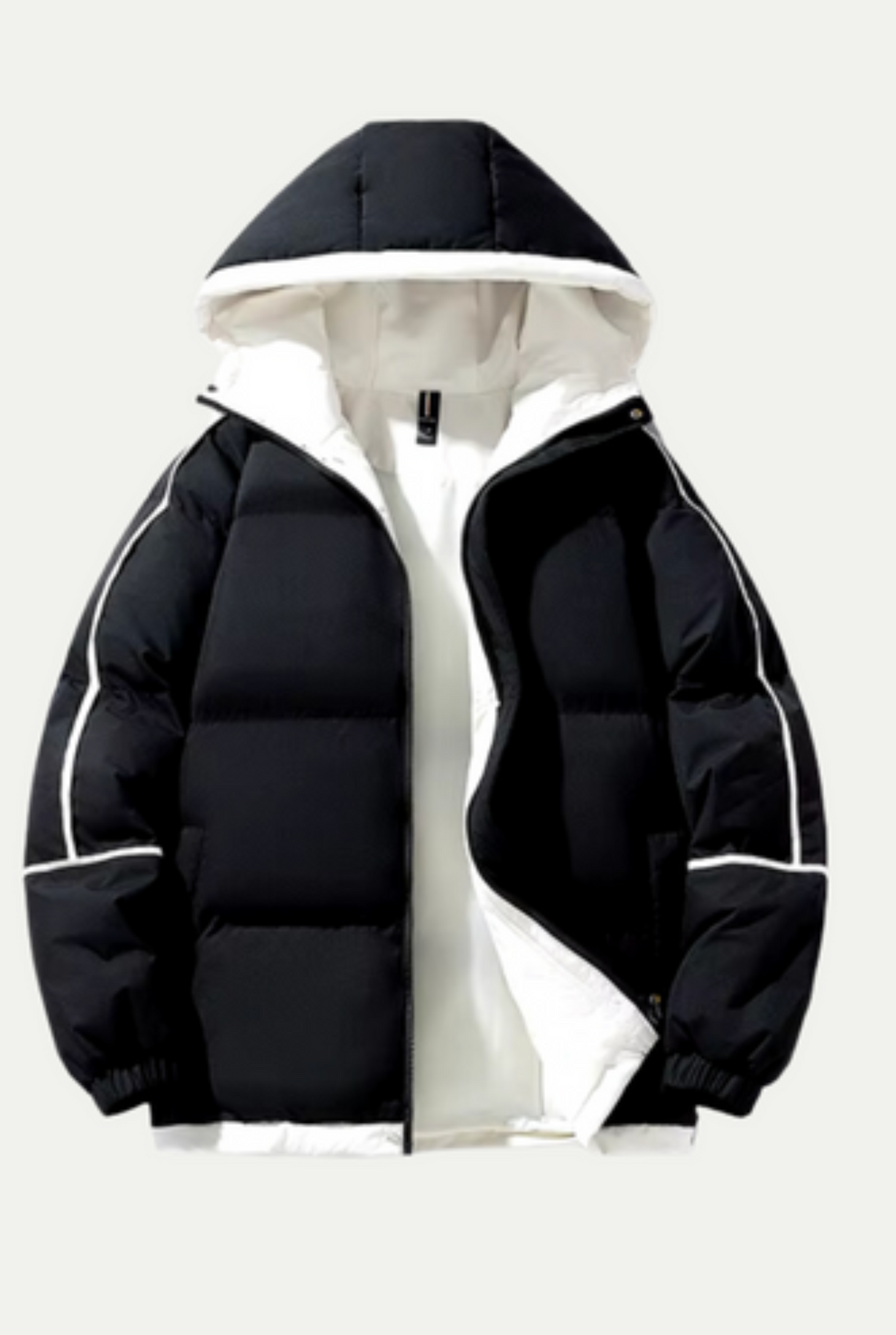 A sleek, insulated puffer jacket designed to keep you comfortably protected through cold-weather days. Its structured hood, smooth inner lining, and generously padded body create a warm and practical outer layer suited for daily wear, travel, and outdoor commutes. Clean panel details give the jacket a modern, streamlined appearance while maintaining a cosy, easy-to-layer fit.