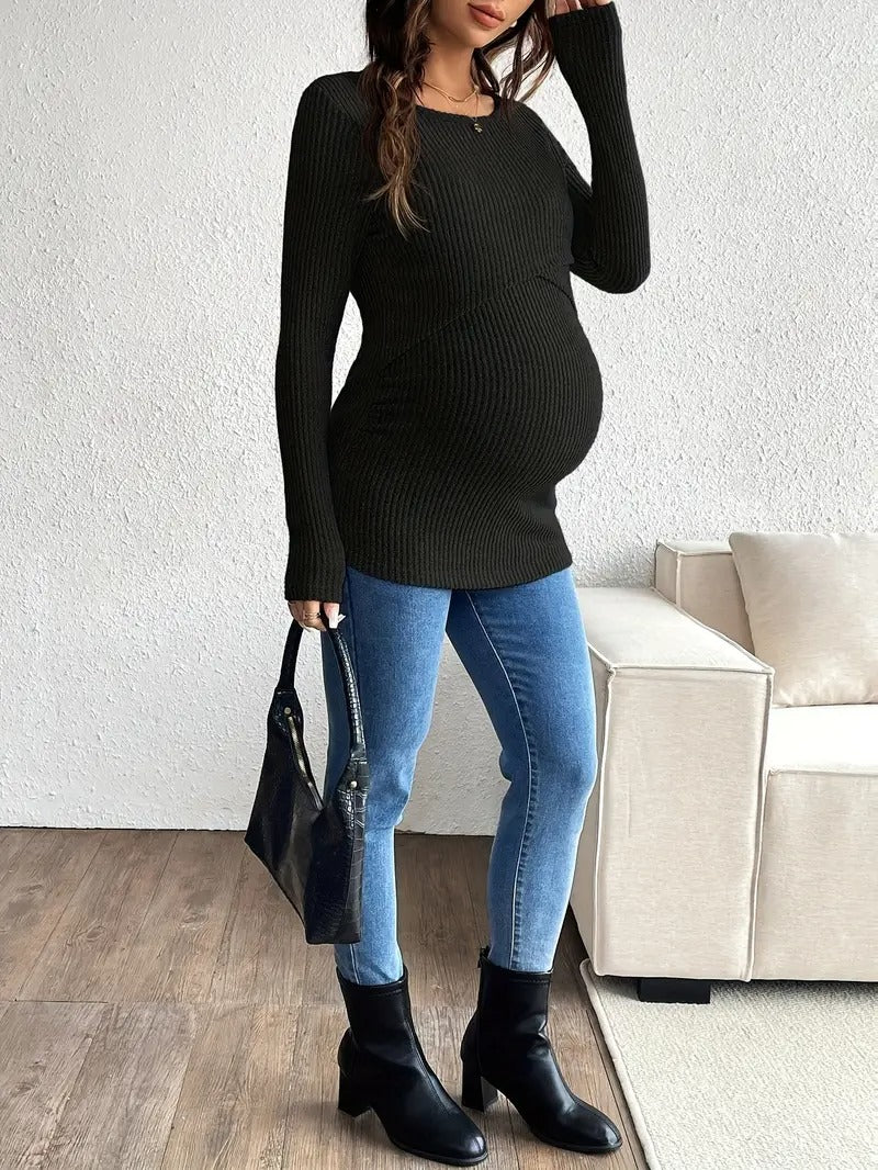 Experience both comfort and practicality with the Women’s CozyLift Maternity & Nursing Knit Top. Designed with a soft ribbed texture and a discreet lift-up front layer, it offers easy nursing access while maintaining a stylish, flattering fit through every stage of motherhood. The stretchy knit fabric gently hugs the bump, providing warmth and flexibility for pregnancy and postpartum wear.