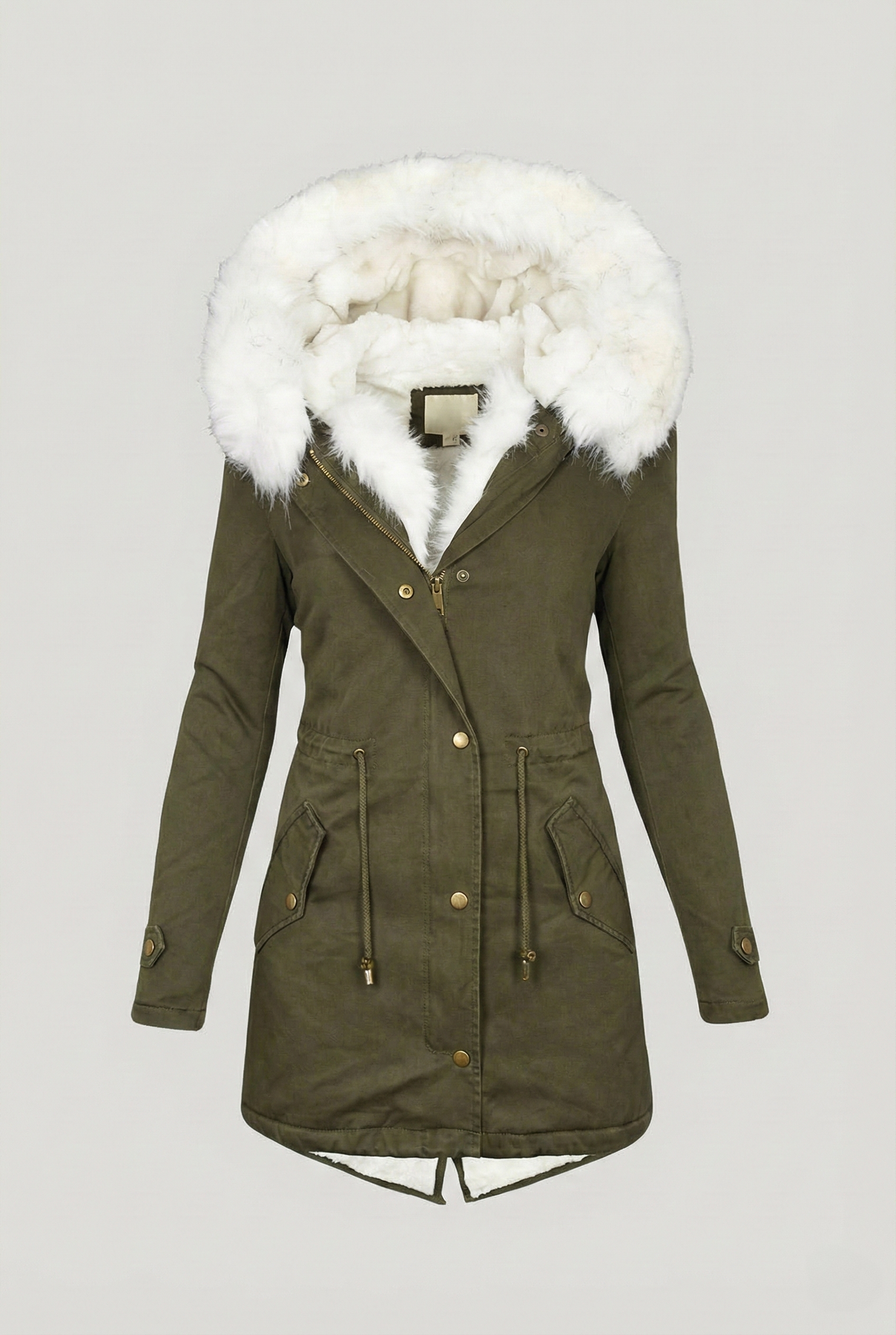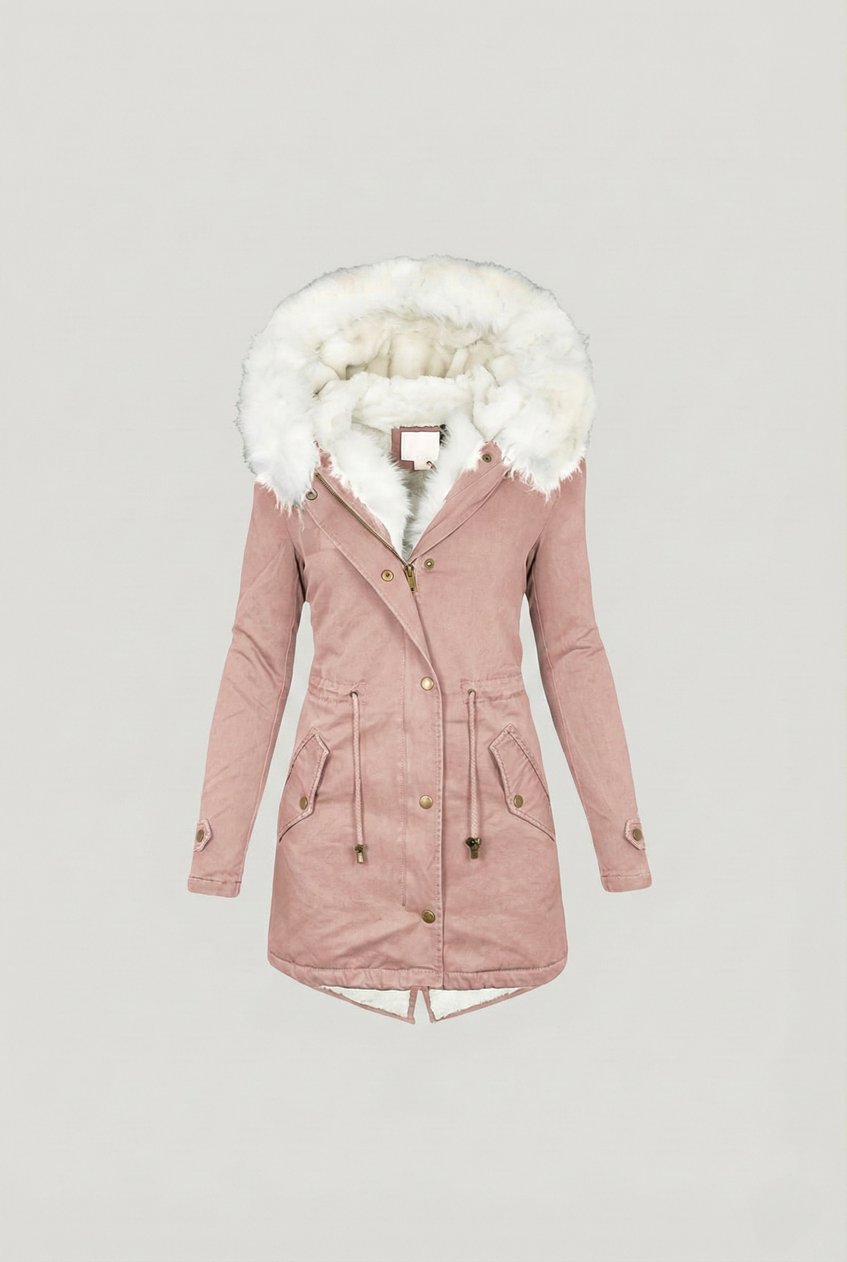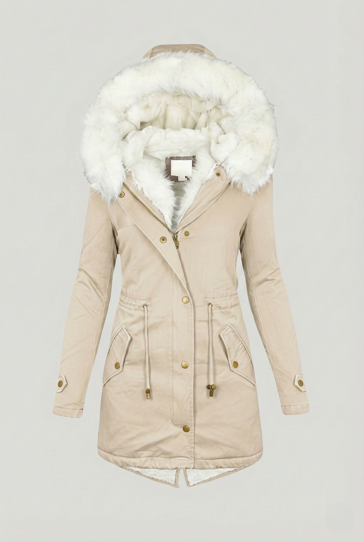 A refined winter parka designed to blend warmth, structure, and elegance in one timeless piece. This belted silhouette enhances the figure while offering dependable seasonal insulation, making it an ideal outerwear choice for cold-weather days. The plush hood trim adds a cosy, luxurious touch, framing the face beautifully and providing added comfort against the chill. With its thoughtfully placed pockets, secure fastening, and polished detailing, this parka elevates everyday winter dressing with ease.