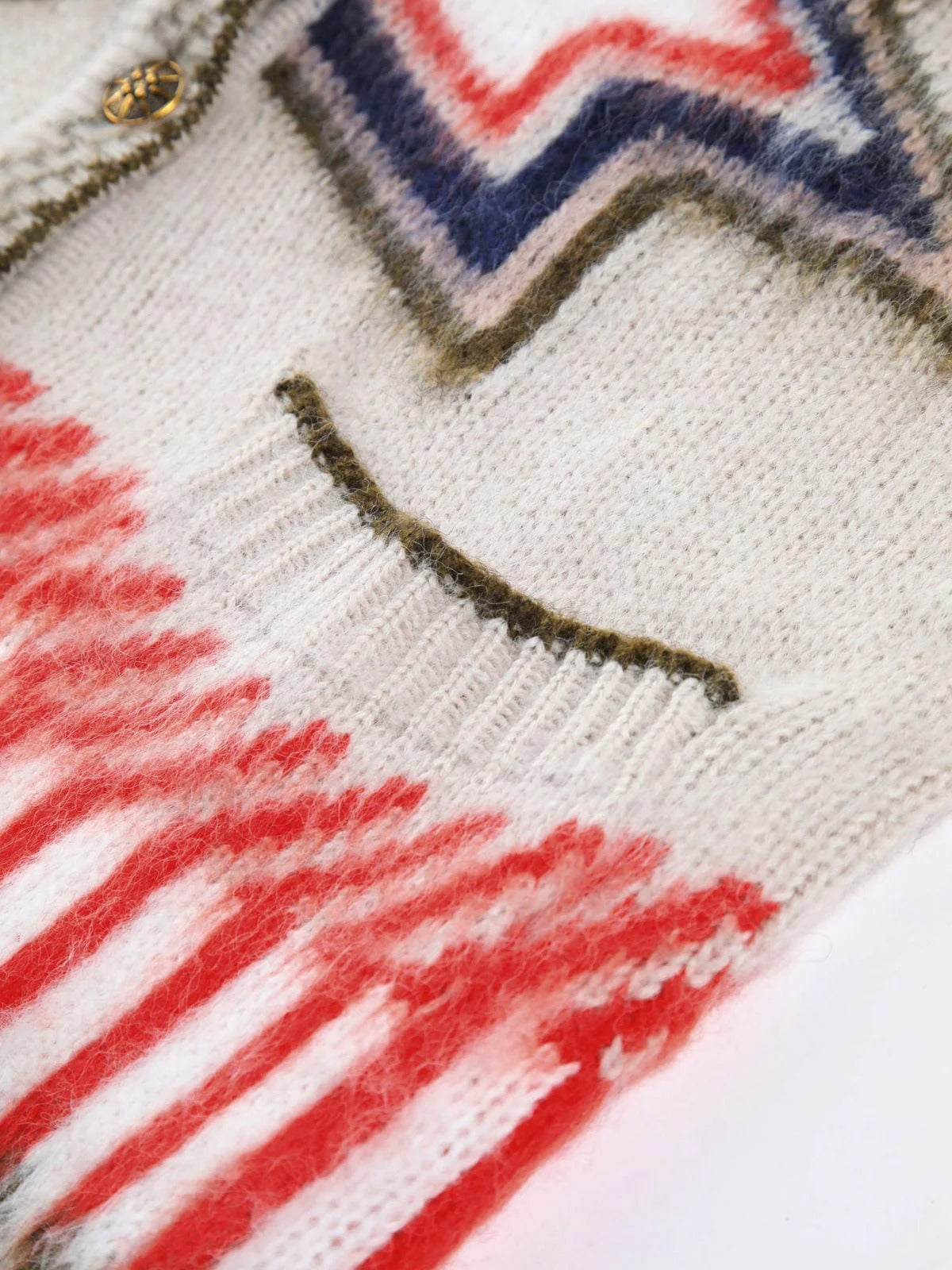 Add a touch of artistic flair to your wardrobe with the Isolde Printed Cardigan — where cozy comfort meets effortless style. Designed with a soft knit texture and bold geometric patterns, this cardigan is the perfect statement piece for any casual ensemble.